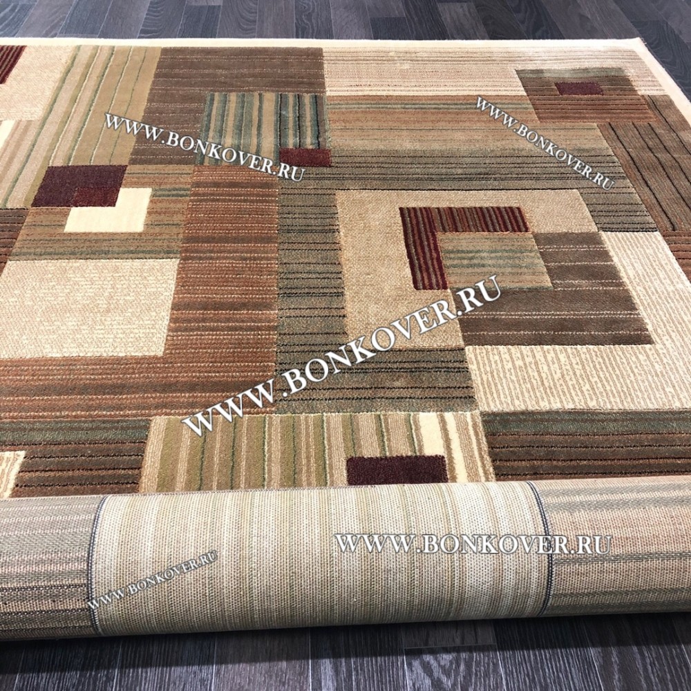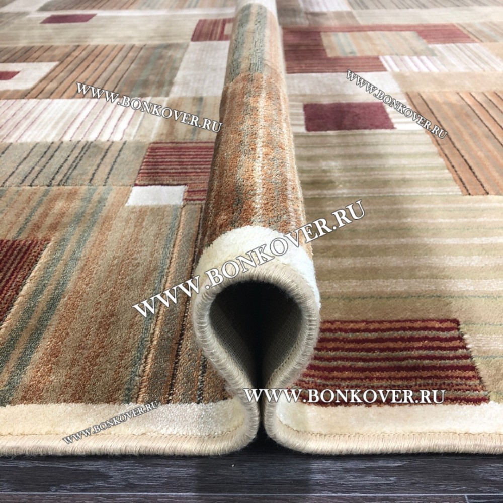 Красивый Бельгийский Ковер из Вискозы Геометрия Бежевый наполняет интерьер гостиной теплом и уютом, гармонично сочетает в себе изящество и красоту. Он выполнен из износостойких материалов, комфортный и долговечный.