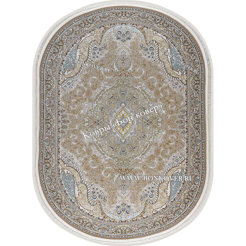 Элегантный Иранский Овальный Ковер Для Гостиной Арт 30242 наполняет интерьер комнаты теплом и уютом, гармонично сочетает в себе изящество и красоту. Он создан из экологически чистого сырья, прочный и долговечный.