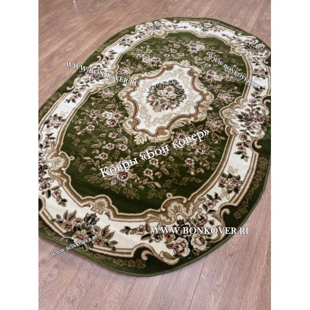 Шикарный Ковер для гостиной дизайн 26354 New Зеленый Овал наполняет интерьер жилого пространства теплом и уютом, гармонично сочетает в себе изящество и красоту. Он изготовлен из высококачественного сырья, комфортный и долговечный.