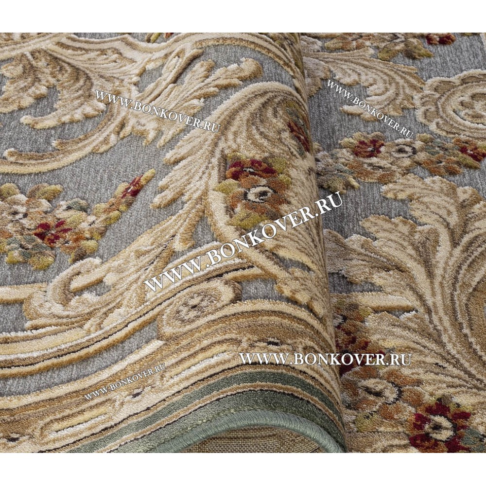 Ковер для гостиной из артшелка дизайн 56 Бежевый с Зеленым станет идеальным преображением вашей комнаты, подчеркивая высокий статус семьи владельца.