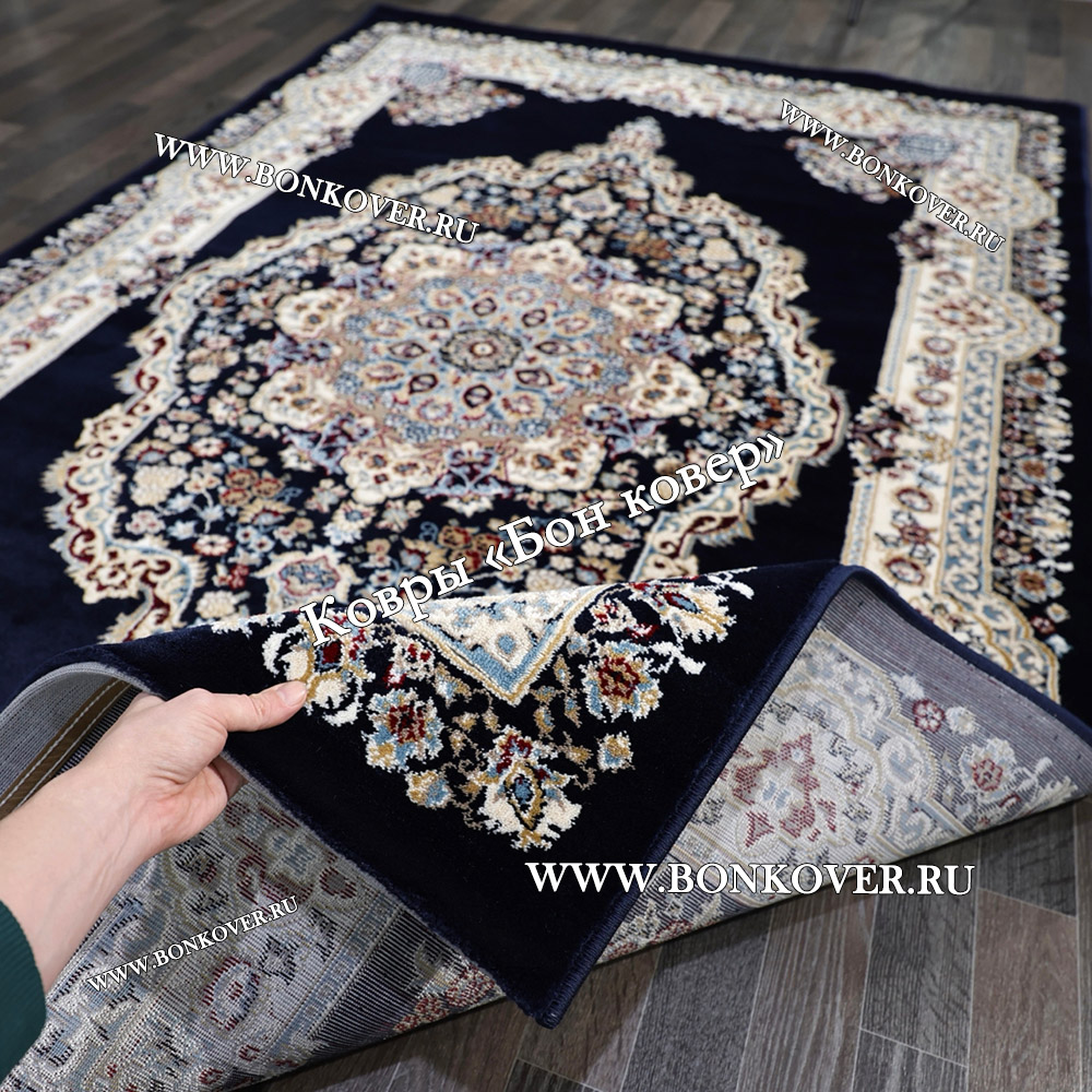 Изящный Турецкий Ковер Медальон дизайн 72 Синий наполняет интерьер помещения теплом и уютом, гармонично сочетает в себе изящество и красоту. Он изготовлен из высококачественных материалов, прочный и долговечный.