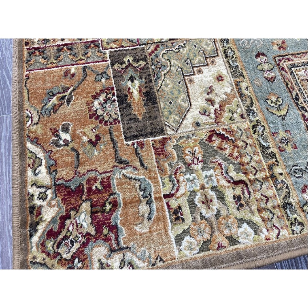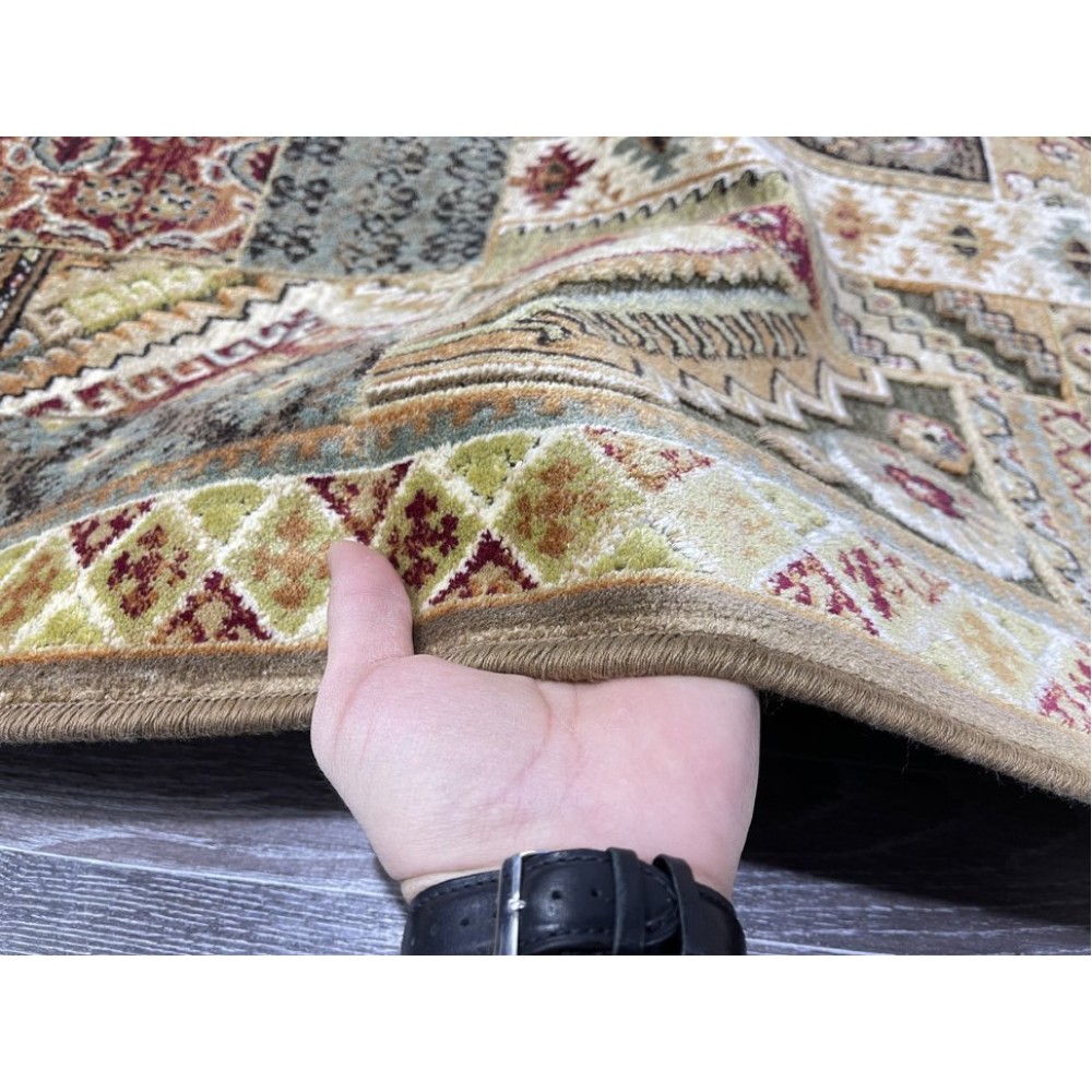 Ковер отличного качества. Ворс плотный, невысокий, приятный. Цветовая гамма подобрана очень стильно. Подойдёт к любому интерьеру. Размер чуть меньше заявленного ( 154х230). Упакован трубочкой . Доставили быстро.