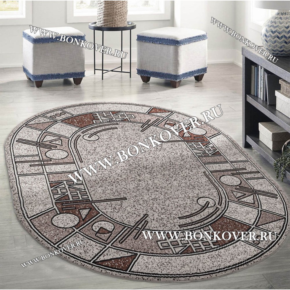 Ковер Лайт Карпет New 4 Дизайн 03 Бежево-Коричневый Овал станет великолепным преображением вашей комнаты, подчеркивая высокий статус семьи владельца.