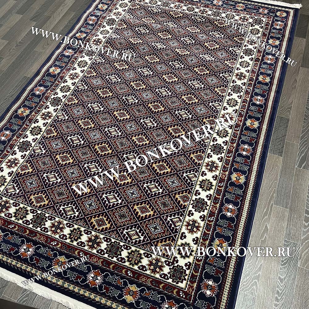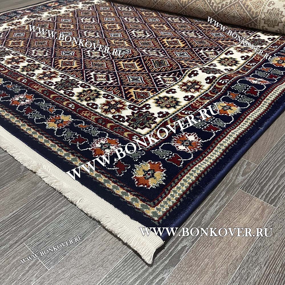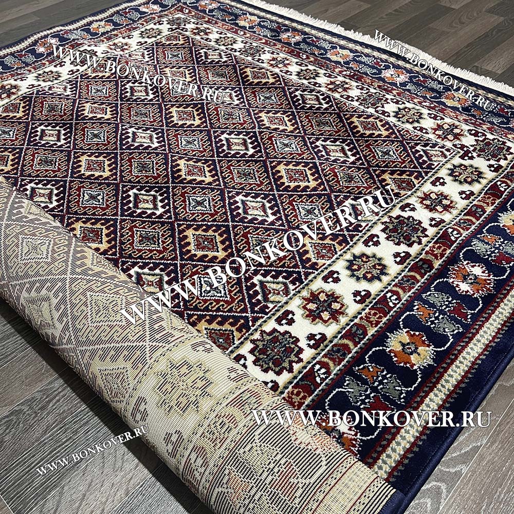 Элегантный Ковер с восточным орнаментом Дизайн 02 Синий Прямоугольный наполняет интерьер жилого пространства теплом и уютом, гармонично сочетает в себе изящество и стиль. Он выполнен из высококачественного сырья, прочный и долговечный.