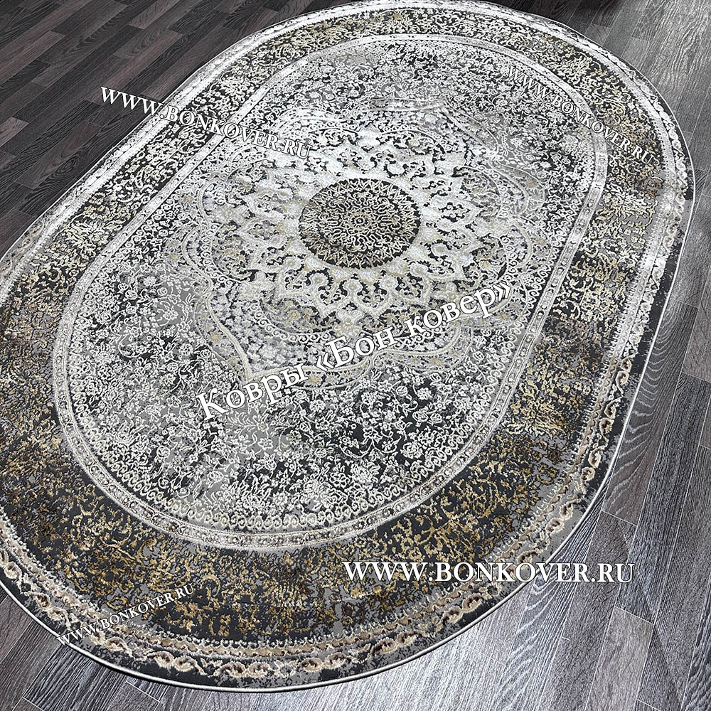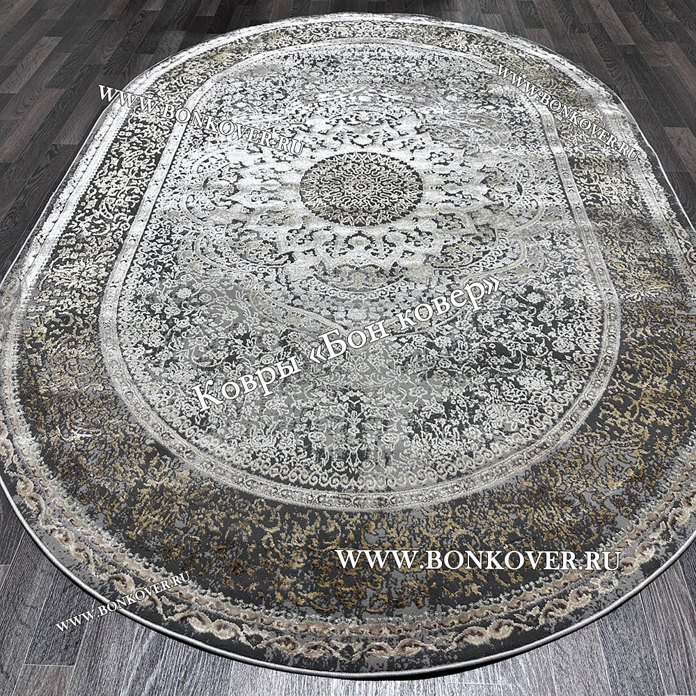 Ковер Турция Для Гостиной 41 Серый с Бежевым Овал станет привлекательным дополнением интерьера, оформленного в современном или классическом стиле. Мягкое, но прочное, ковровое изделие обеспечивает тепло- и шумоизоляцию, отличается длительным сроком эксплуатации, надежностью, экологичностью и высокой износостойкостью, является отличным барьером от повышенной влажности в комнате и утеплителем для холодного пола. Благодаря качеству материалов, ковер не деформируется, сохраняет форму под тяжестью предметов мебели. За его поверхностью легко ухаживать.