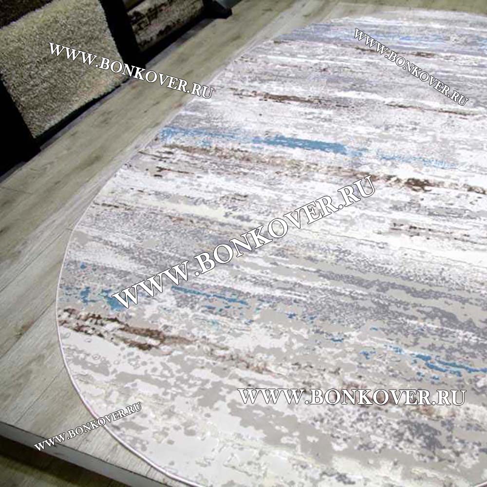Ковер Турция Современный Дизайн 20 Серый с Голубым Овал станет великолепным преображением жилого помещения, подчеркивая высокий статус семьи владельца.