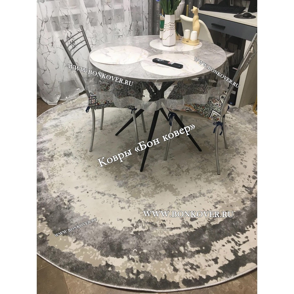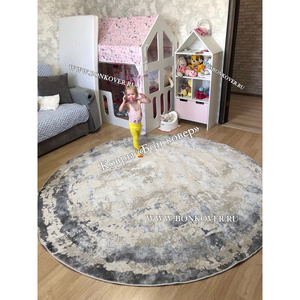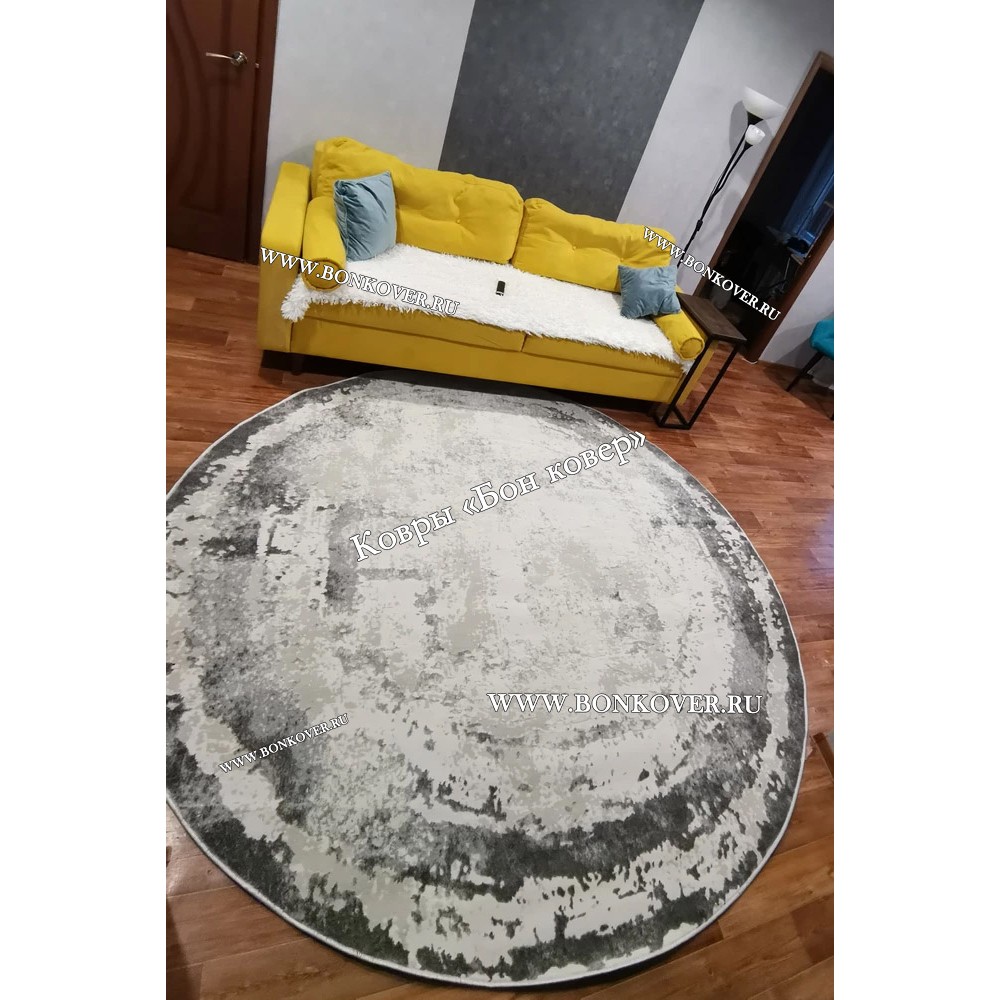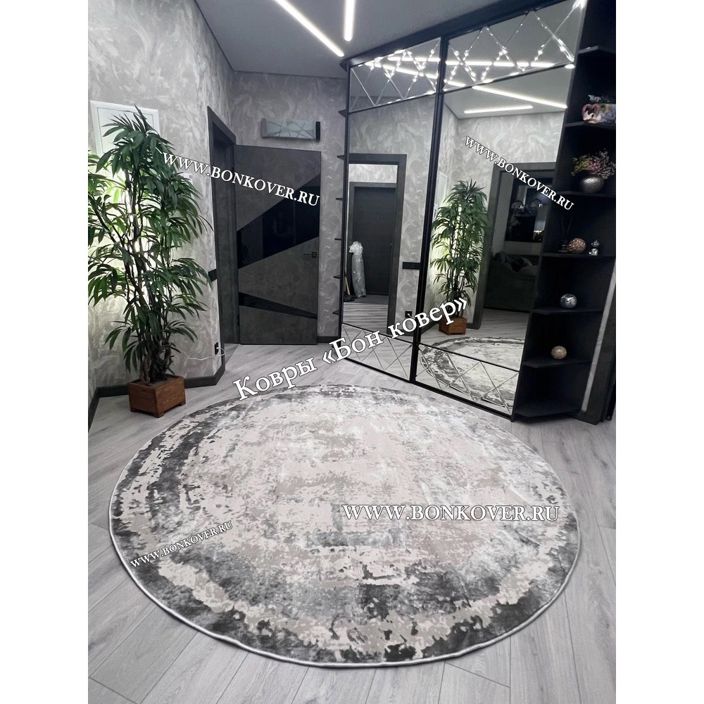 Элегантный Ковер в гостиную дизайн 08 Серый Круг наполняет интерьер жилого пространства теплом и уютом, гармонично сочетает в себе изящество и стиль. Он создан из износостойких материалов, прочный и долговечный.