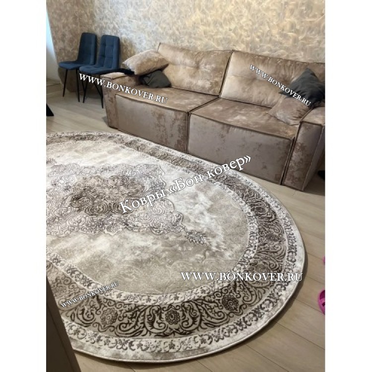 Изящный Ковер в гостиную дизайн 10 Сиреневый Овал наполняет интерьер квартиры теплом и уютом, гармонично сочетает в себе изящество и стиль. Он изготовлен из высококачественного сырья, прочный и долговечный.