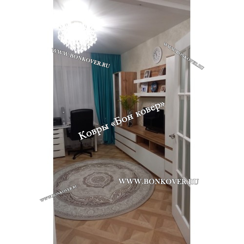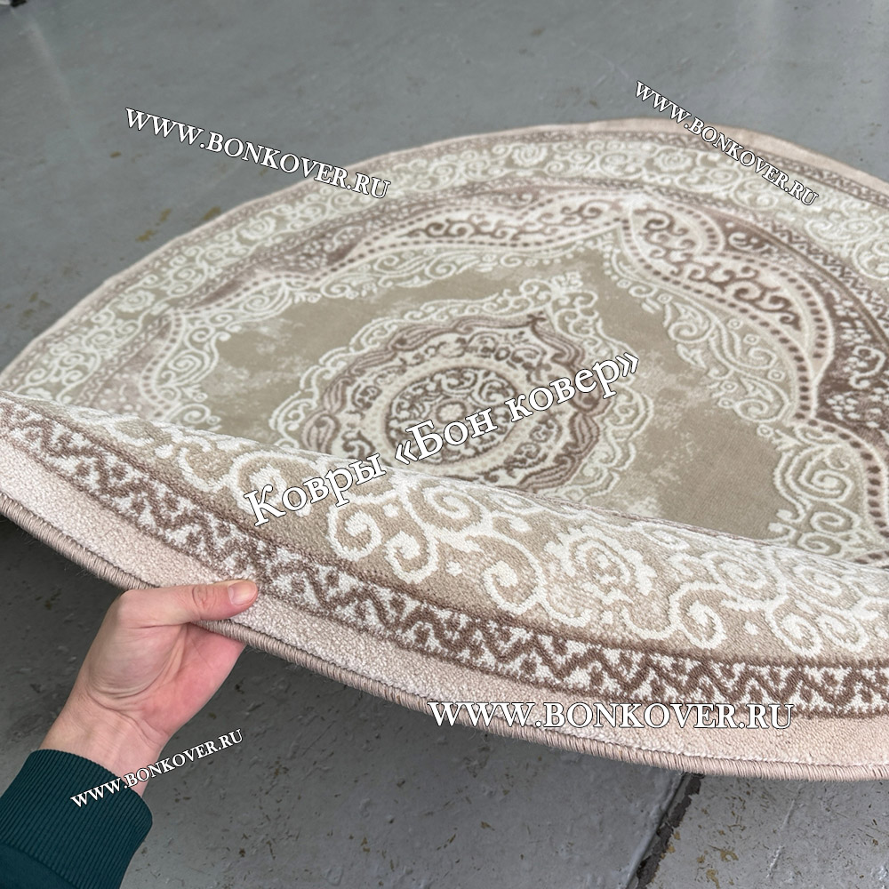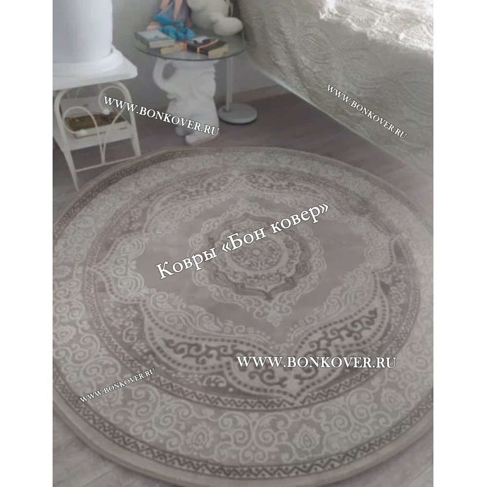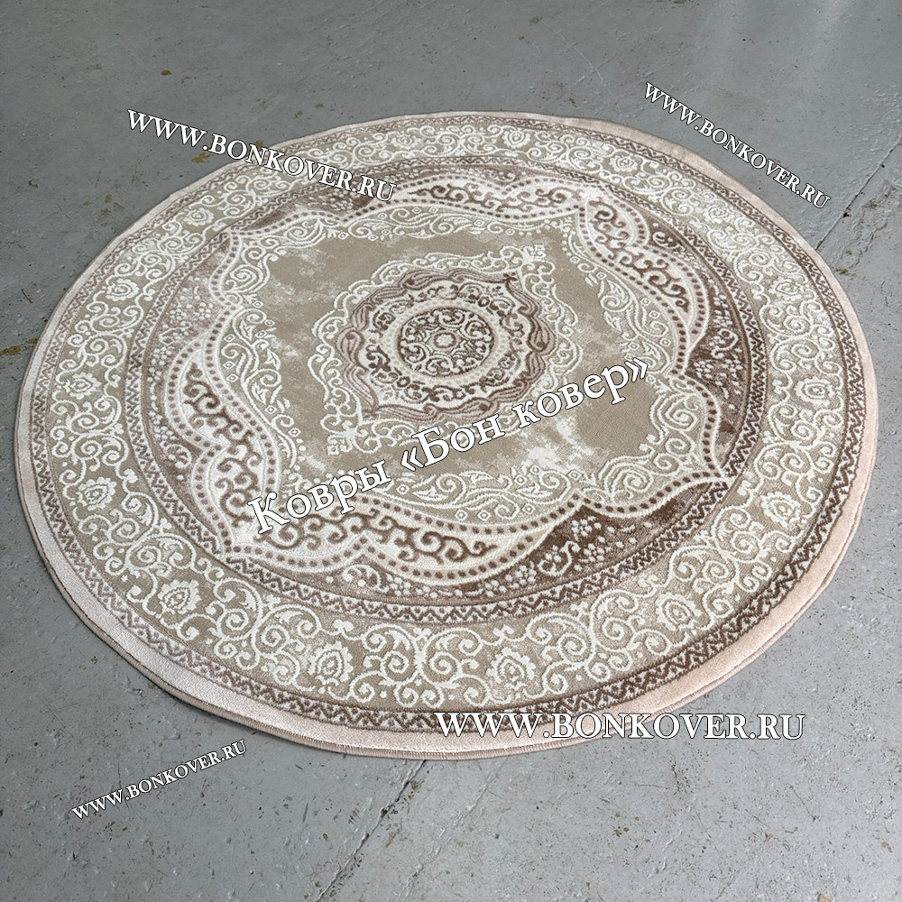 Изящный Круглый ковер в гостиную дизайн 02 Бежевый наполняет интерьер гостиной теплом и уютом, гармонично сочетает в себе изящество и красоту. Он выполнен из высококачественного сырья, комфортный и долговечный.