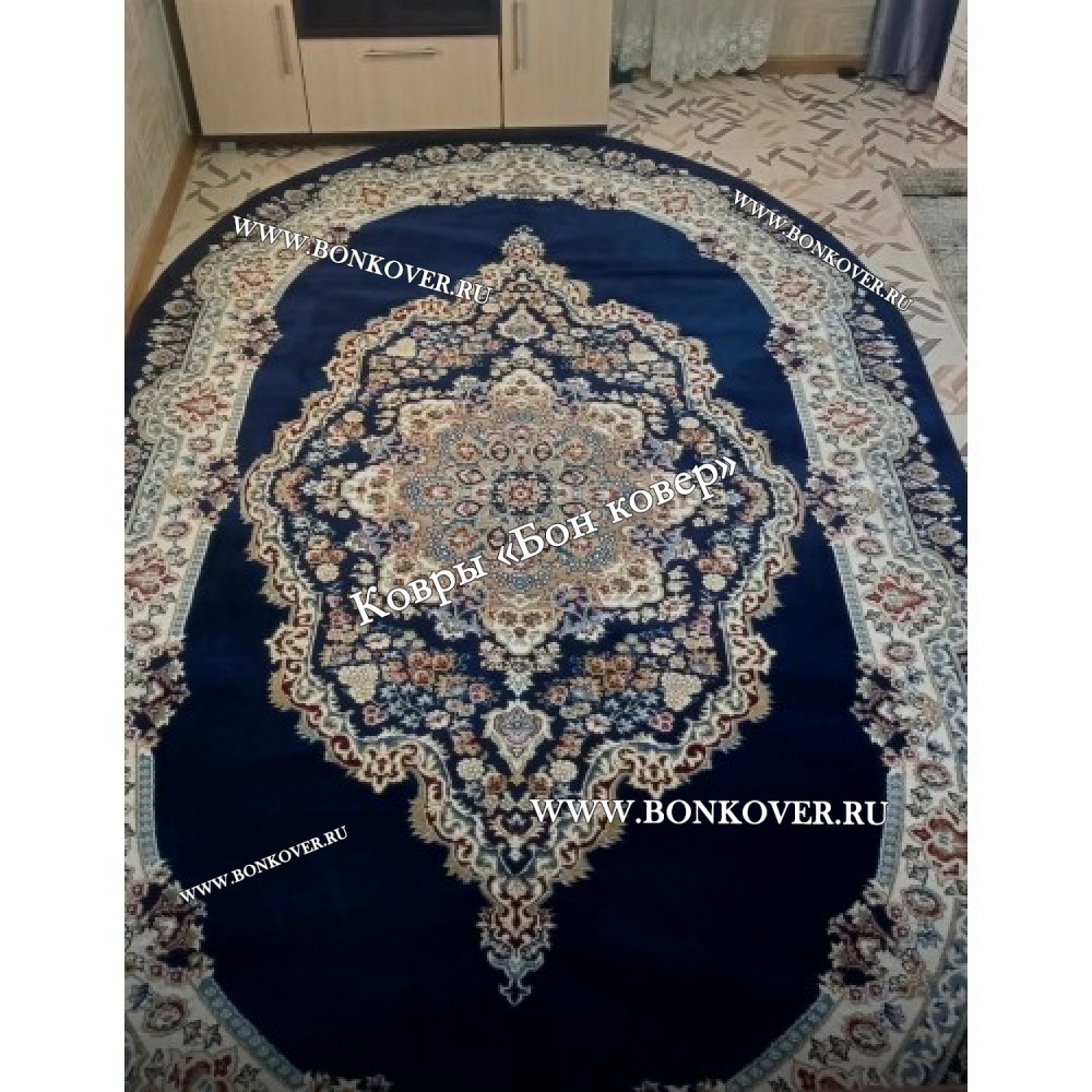Турецкий Ковер Медальон дизайн 72 Синий Овальный станет великолепным преображением жилого помещения, подчеркивая высокий статус хозяина.