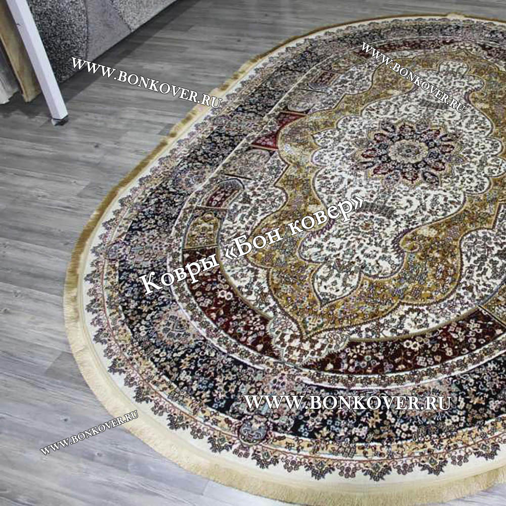 Турецкий овальный ковер в гостиную арт 28768 станет гармоничным дополнением интерьера, оформленного в современном или классическом стиле. Мягкое, но прочное, ковровое изделие обеспечивает тепло- и шумоизоляцию, отличается длительным периодом эксплуатации, надежностью, экологичностью и высокой износостойкостью, является отличным барьером от повышенной влажности в комнате и утеплителем для холодного пола. Благодаря качеству материалов, ковер не деформируется, сохраняет форму под тяжестью предметов мебели. За его поверхностью легко ухаживать.