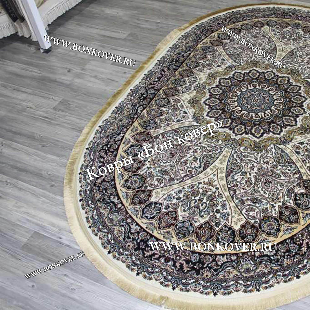 Элегантный Турецкий овальный ковер в гостиную арт 28776 наполняет интерьер комнаты теплом и уютом, гармонично сочетает в себе изящество и красоту. Он соткан из современных материалов, комфортный и долговечный.