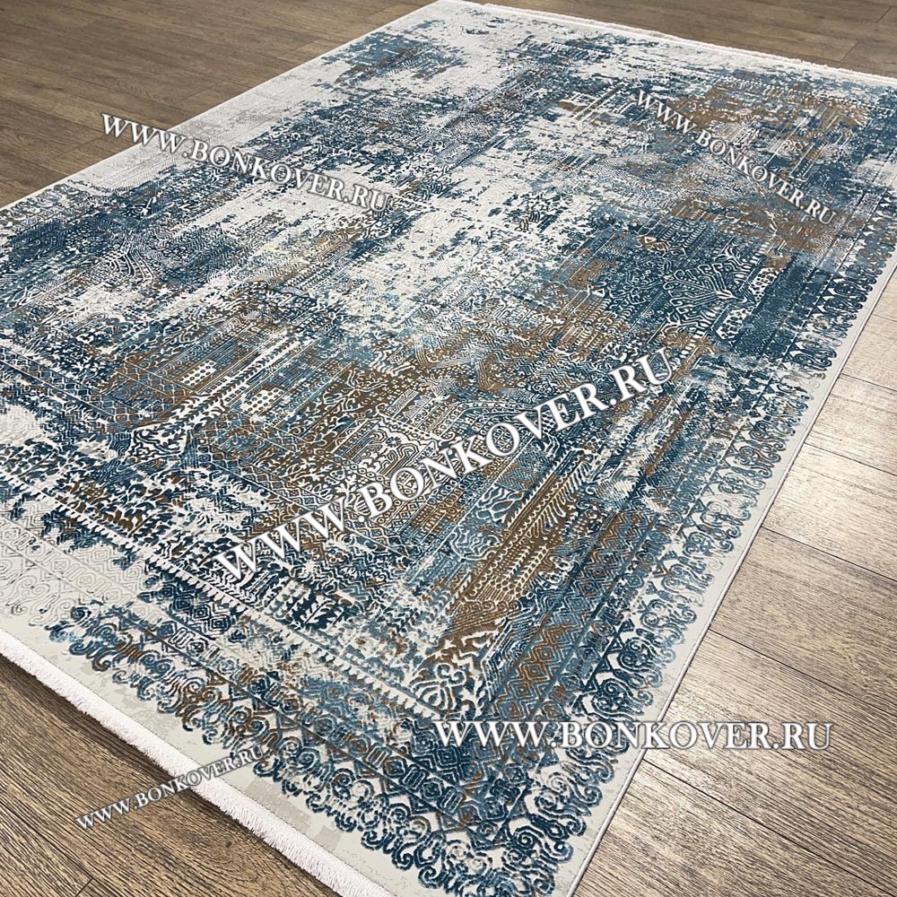 Высокоплотный Премиальный Ковер из вискозы Дизайн 02 Голубой с Бежевым станет стильным преображением жилого помещения, подчеркивая высокий статус семьи владельца.